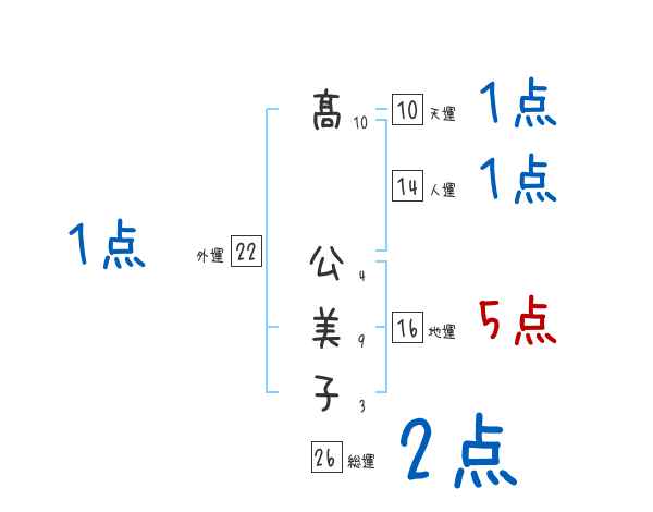 髙公美子さんの画数の鑑定結果