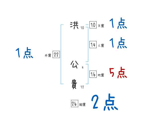 天運![]() | 洪公貴さんの天運は10画の1つ星!不安を感じやすい傾向。ストレスを抱えないように注意しましょう。 家系が持つ宿命的な運勢を表します。祖先から受け継いだ苗字ですので自分の力が及びません。家柄を象徴します。 |