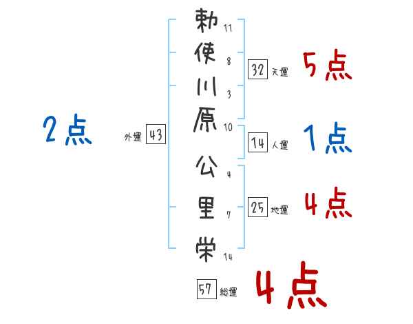 勅使川原公里栄さんの画数の鑑定結果