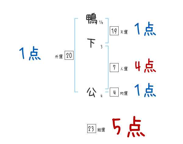 鴨下公さんの画数の鑑定結果