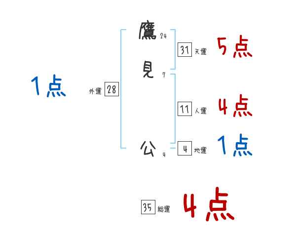 鷹見公さんの画数の鑑定結果