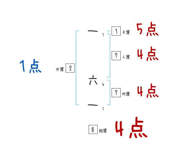 総運![]() | 一六一さんの総運は8画の4つ星!勤勉家。根気強く努力し成功する。忍耐力がある。 あなたの人生を表す1番重要な運勢です。生涯を通じて影響する総合運となり、主に50歳以降の晩年期に影響を及ぼします。 |