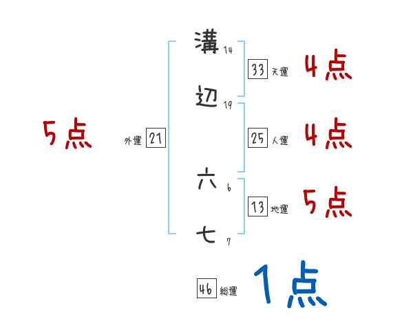 溝辺六七さんの画数の鑑定結果