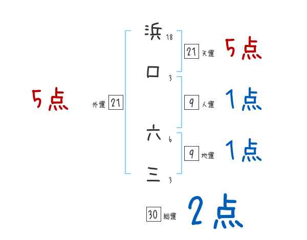 浜口六三さんの画数の鑑定結果