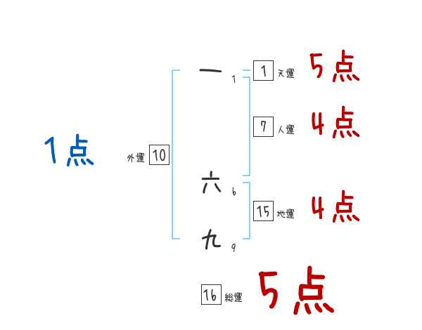 総運![]() | 一六九さんの総運は16画の5つ星!人望が厚く大きく発展する。逆転成功が見える。 あなたの人生を表す1番重要な運勢です。生涯を通じて影響する総合運となり、主に50歳以降の晩年期に影響を及ぼします。 |