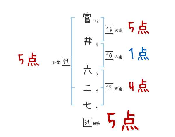 富井六二七さんの画数の鑑定結果