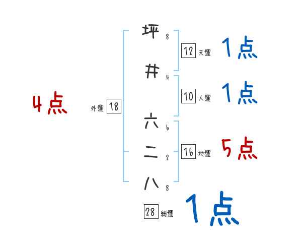天運![]() | 坪井六二八さんの天運は12画の1つ星!簡単な失敗で諦めてしまいやすいかも。着実に行動すると良いでしょう。 家系が持つ宿命的な運勢を表します。祖先から受け継いだ苗字ですので自分の力が及びません。家柄を象徴します。 |