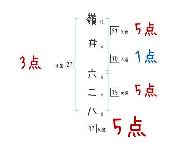 嶺井六二八さんの画数の鑑定結果