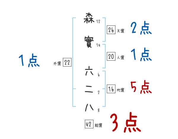 天運![]() | 森實六二八さんの天運は26画の2つ星!波瀾万丈かも。信頼できる人を大事にしましょう。 家系が持つ宿命的な運勢を表します。祖先から受け継いだ苗字ですので自分の力が及びません。家柄を象徴します。 |