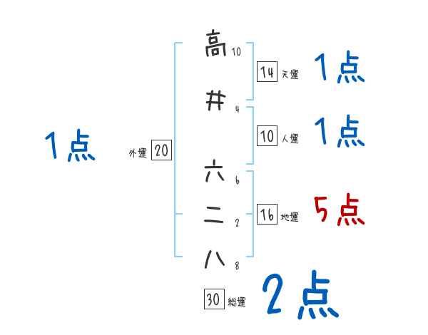 高井六二八さんの画数の鑑定結果