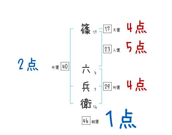 篠六兵衛さんの画数の鑑定結果