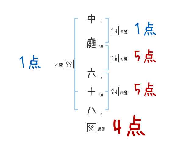 総運![]() | 中庭六十八さんの総運は38画の4つ星!温厚な性格で技術的な才能を発揮する。職人的な仕事に向いている。 あなたの人生を表す1番重要な運勢です。生涯を通じて影響する総合運となり、主に50歳以降の晩年期に影響を及ぼします。 |