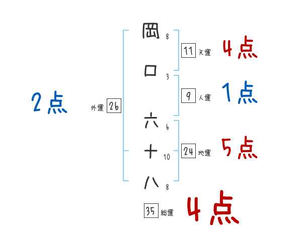岡口六十八さんの画数の鑑定結果
