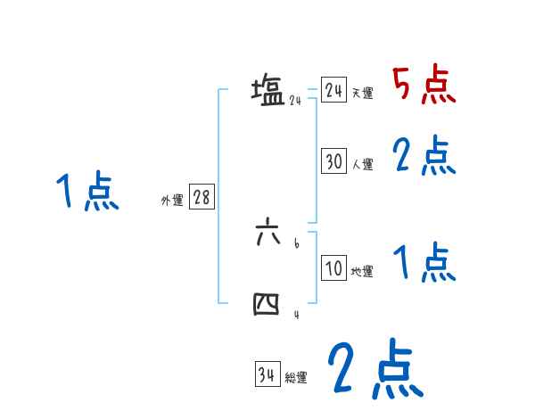天運![]() | 塩六四さんの天運は24画の5つ星!家庭運が良く順調な人生。金運にも恵まれる。 家系が持つ宿命的な運勢を表します。祖先から受け継いだ苗字ですので自分の力が及びません。家柄を象徴します。 |