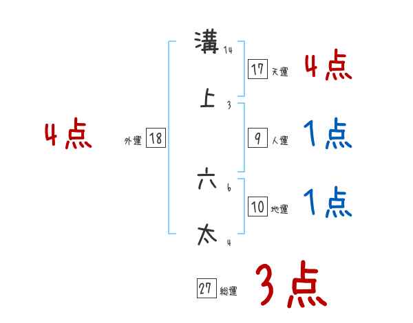 溝上六太さんの画数の鑑定結果