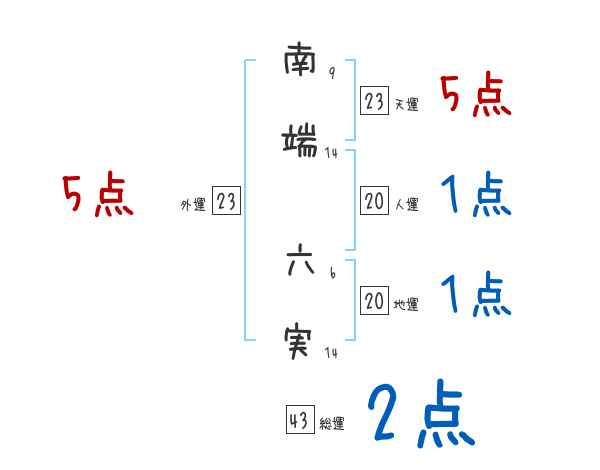 南端六実さんの画数の鑑定結果