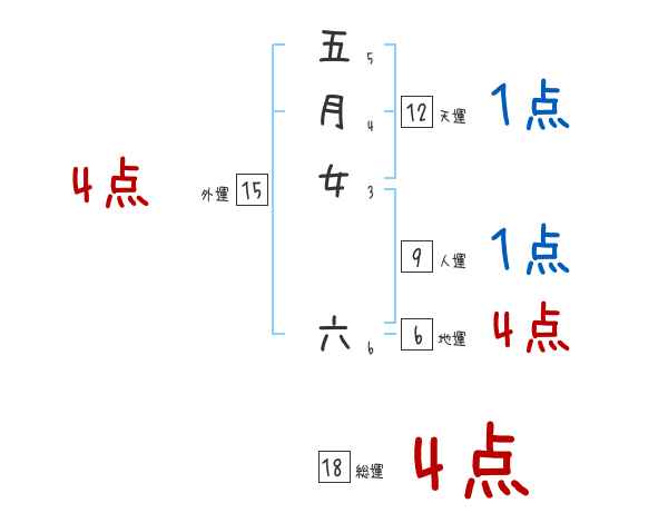 五月女六さんの画数の鑑定結果
