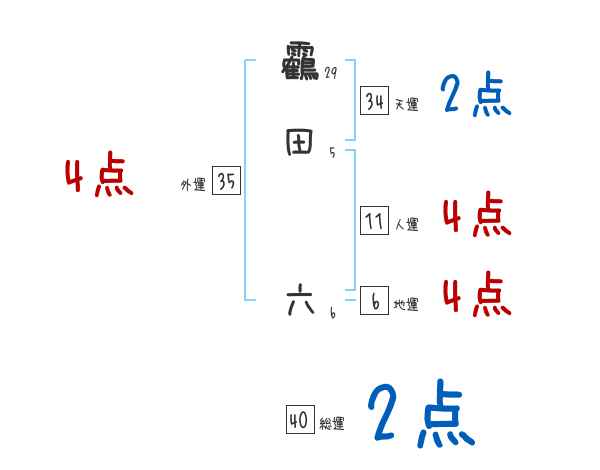 靏田六さんの画数の鑑定結果