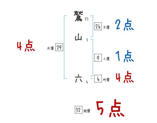 総運![]() | 鷲山六さんの総運は32画の5つ星!柔軟性があり成功する。チャンスが多く金運が良い。 あなたの人生を表す1番重要な運勢です。生涯を通じて影響する総合運となり、主に50歳以降の晩年期に影響を及ぼします。 |