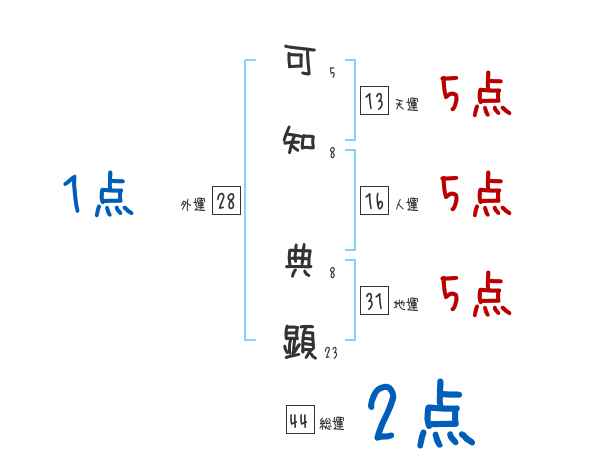 可知典顕さんの画数の鑑定結果