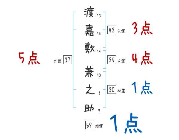渡嘉敷兼之助さんの画数の鑑定結果