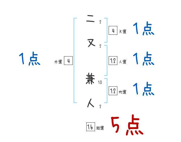 二又兼人さんの画数の鑑定結果