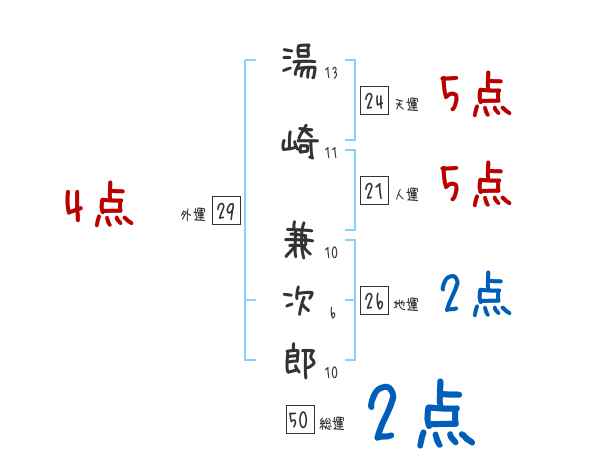 湯崎兼次郎さんの画数の鑑定結果