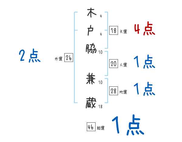 木戸脇兼蔵さんの画数の鑑定結果