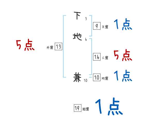 人運![]() | 下地兼さんの人運は16画の5つ星!人望が厚く大きく発展する。逆転成功が見える。 性格や才能などを表す2番目に重要な運勢です。人間関係や協調性、社会的な成功に影響します。主に20歳から50歳ぐらいまでの中年期の運勢を表します。 |