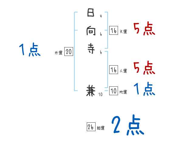 日向寺兼さんの画数の鑑定結果