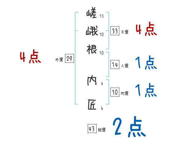 嵯峨根内匠さんの画数の鑑定結果