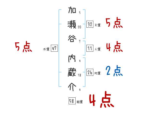 加瀬谷内蔵介さんの総運は58画の4つ星