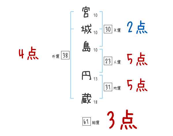 宮城島円蔵さんの画数の鑑定結果