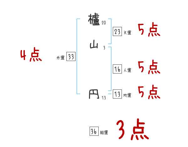櫨山円さんの画数の鑑定結果