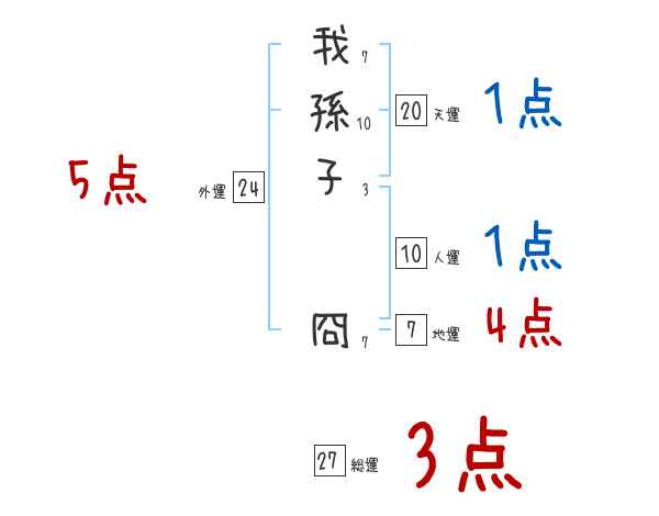 外運![]() | 我孫子冏さんの外運は24画の5つ星!家庭運が良く順調な人生。金運にも恵まれる。 生活面を象徴する運勢です。外部から受ける影響力を表し、結婚運、家庭運や職場、環境への順応性を表します。 |