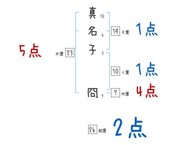 真名子冏さんの画数の鑑定結果
