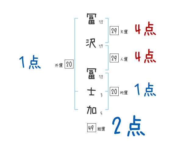 冨沢冨士加さんの画数の鑑定結果