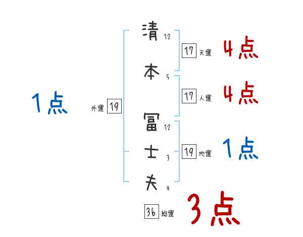 清本冨士夫さんの画数の鑑定結果
