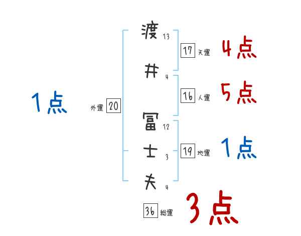 人運![]() | 渡井冨士夫さんの人運は16画の5つ星!人望が厚く大きく発展する。逆転成功が見える。 性格や才能などを表す2番目に重要な運勢です。人間関係や協調性、社会的な成功に影響します。主に20歳から50歳ぐらいまでの中年期の運勢を表します。 |