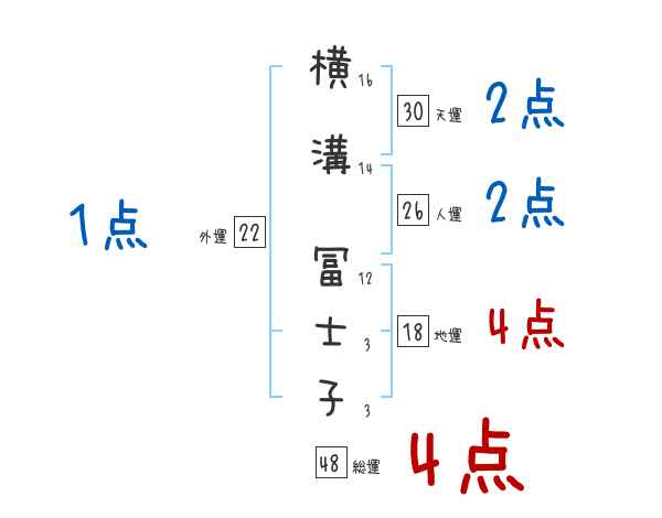 天運![]() | 横溝冨士子さんの天運は30画の2つ星!浮き沈みの激しさに注意しましょう。 家系が持つ宿命的な運勢を表します。祖先から受け継いだ苗字ですので自分の力が及びません。家柄を象徴します。 |