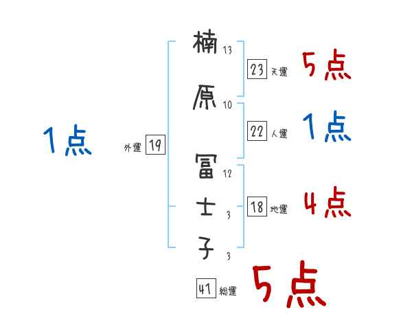 楠原冨士子さんの画数の鑑定結果