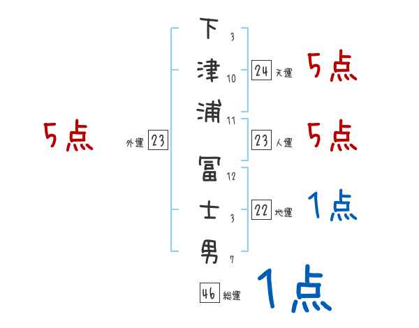 下津浦冨士男さんの画数の鑑定結果