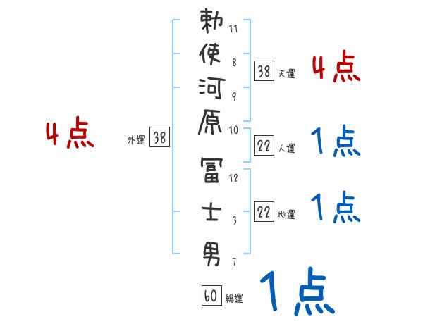 勅使河原冨士男さんの画数の鑑定結果