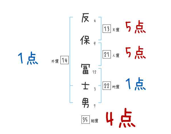 反保冨士男さんの画数の鑑定結果