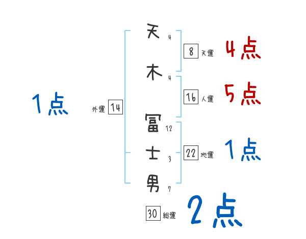 天木冨士男さんの画数の鑑定結果