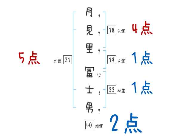 外運![]() | 月見里冨士男さんの外運は21画の5つ星!統率力がある。独立し成功する。名誉を手に入れる。 生活面を象徴する運勢です。外部から受ける影響力を表し、結婚運、家庭運や職場、環境への順応性を表します。 |