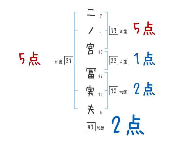 二ノ宮冨実夫さんの画数の鑑定結果