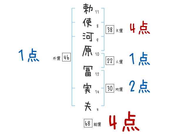 人運![]() | 勅使河原冨実夫さんの人運は22画の1つ星!努力することが苦手ないっぽう手先が器用。芸術性にも優れる。 性格や才能などを表す2番目に重要な運勢です。人間関係や協調性、社会的な成功に影響します。主に20歳から50歳ぐらいまでの中年期の運勢を表します。 |