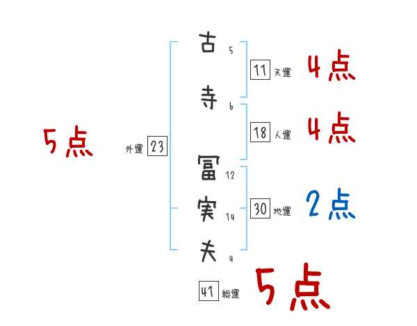 天運![]() | 古寺冨実夫さんの天運は11画の4つ星!着実に富や地位を得る幸運な人生。 家系が持つ宿命的な運勢を表します。祖先から受け継いだ苗字ですので自分の力が及びません。家柄を象徴します。 |