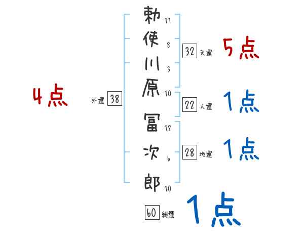 勅使川原冨次郎さんの画数の鑑定結果